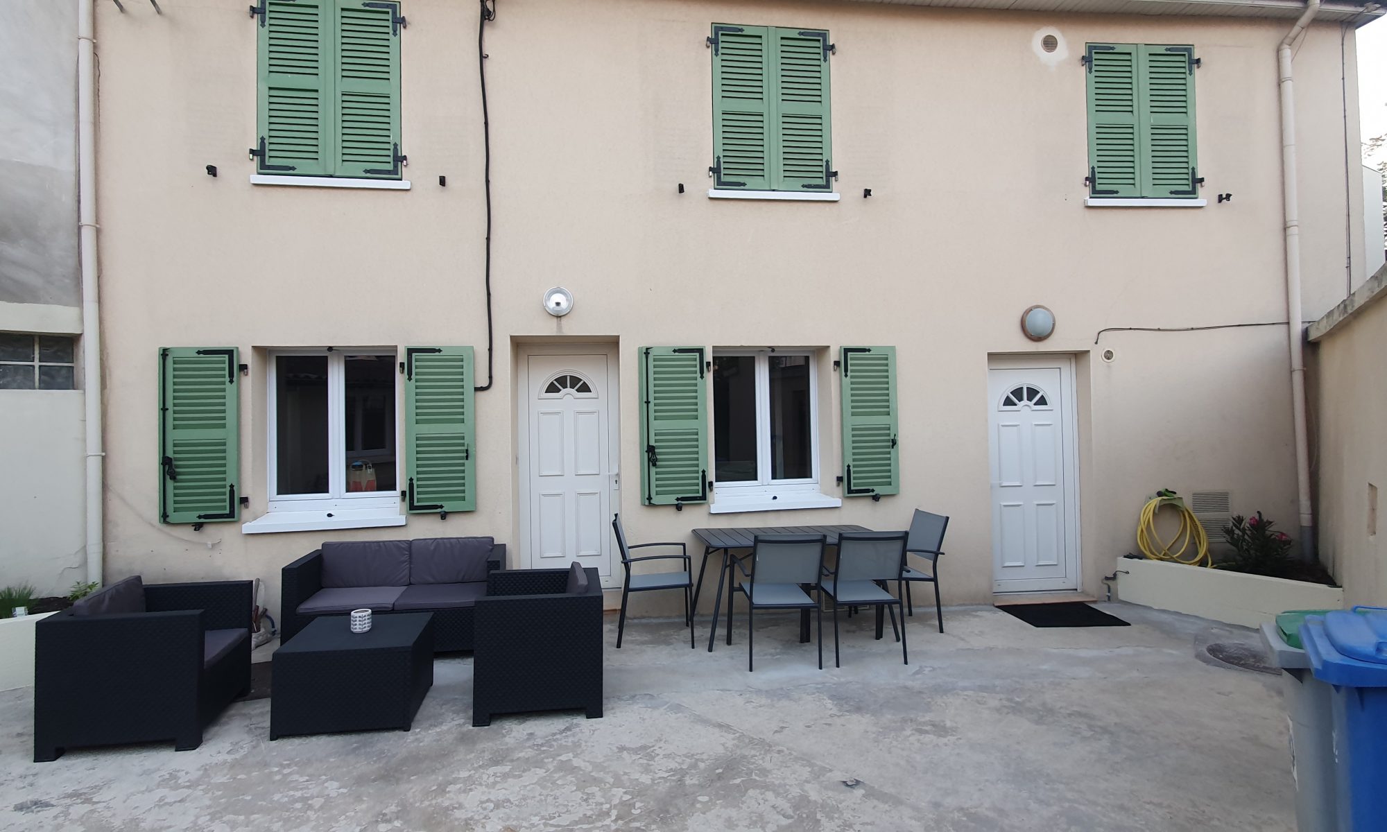 Une agréable cour avant d’une quarantaine de m² équipée d’un mobilier d’été. La cour se veut aussi être un endroit convivial, propice à la détente.